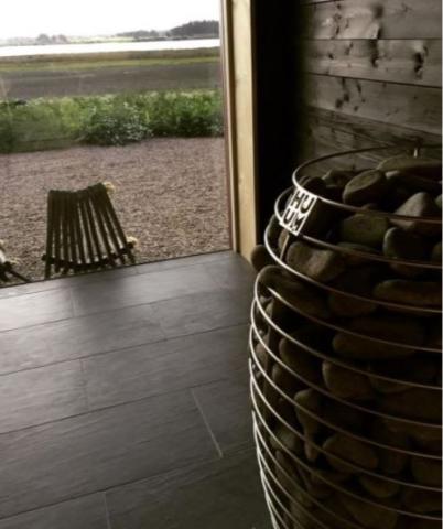 HIVE electric sauna heater is an elegant solution for bigger saunas, for example, for spas and gyms. This floor-mounted heater holds up to 550 lbs of stones.